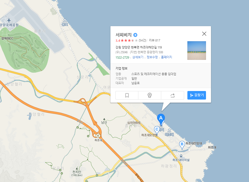 - 택시는 양양 버스터미널에서 서피비치까지는 택시비 약 15,000원 (15분, 12km),